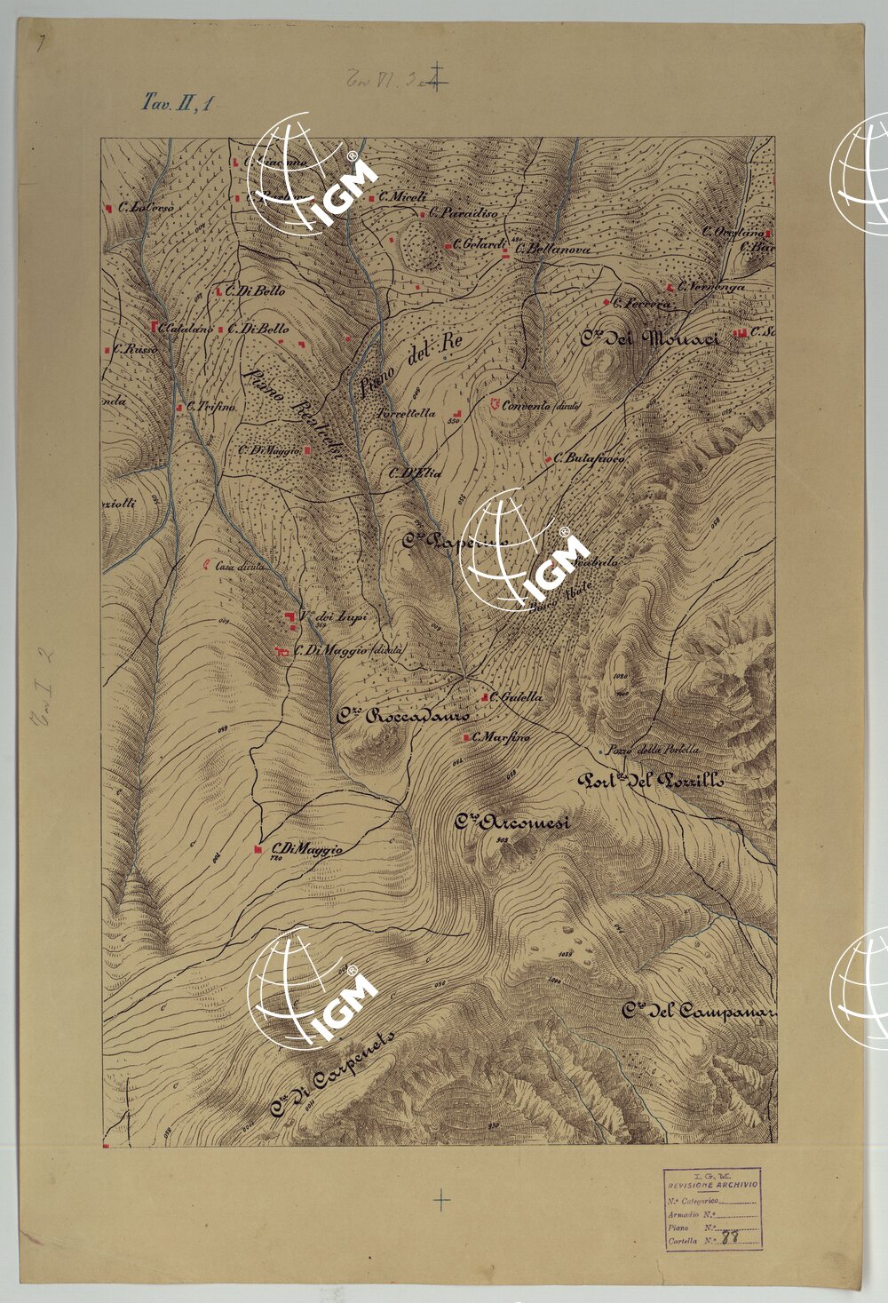 CARTA DEI DINTORNI DI PALERMO ALLA SCALA DI 1 A 10.000 PER LEMANOVRE SULLA CARTA ESEGUITA MEDIANTE INGRANDIMENTO GEOMETRICO DELLA CARTA AL 50.000, RIVEDUTA E COMPLETATA IN OGNI PARTE SUL TERRENO, CON STRUMENTI PER LEVATE SPEDITIVE – TAVOLA II 1.