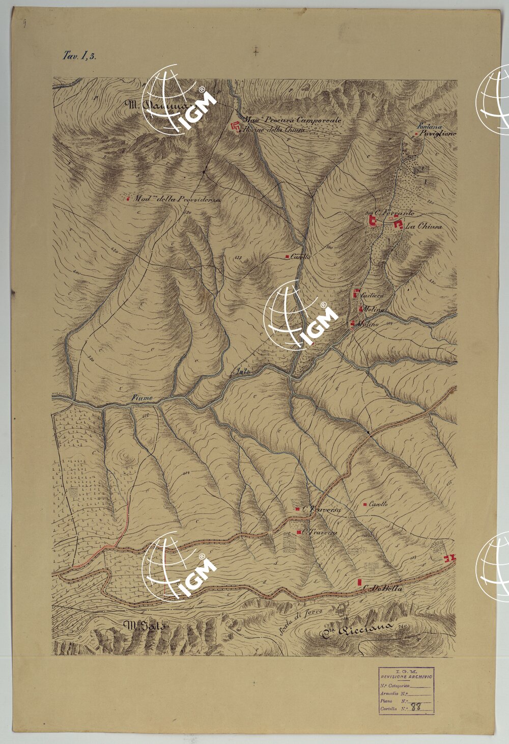 CARTA DEI DINTORNI DI PALERMO ALLA SCALA DI 1 A 10.000 PER LEMANOVRE SULLA CARTA ESEGUITA MEDIANTE INGRANDIMENTO GEOMETRICO DELLA CARTA AL 50.000, RIVEDUTA E COMPLETATA IN OGNI PARTE SUL TERRENO, CON STRUMENTI PER LEVATE SPEDITIVE – TAVOLA I 3.