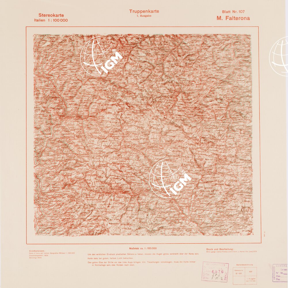 Rappresentazione orografica a curve di livello. Grafia italiana tedesca. I.G.M. (FI).