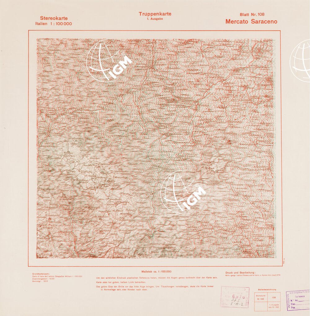 Rappresentazione orografica a curve di livello. Grafia italiana tedesca. I.G.M. (FI).