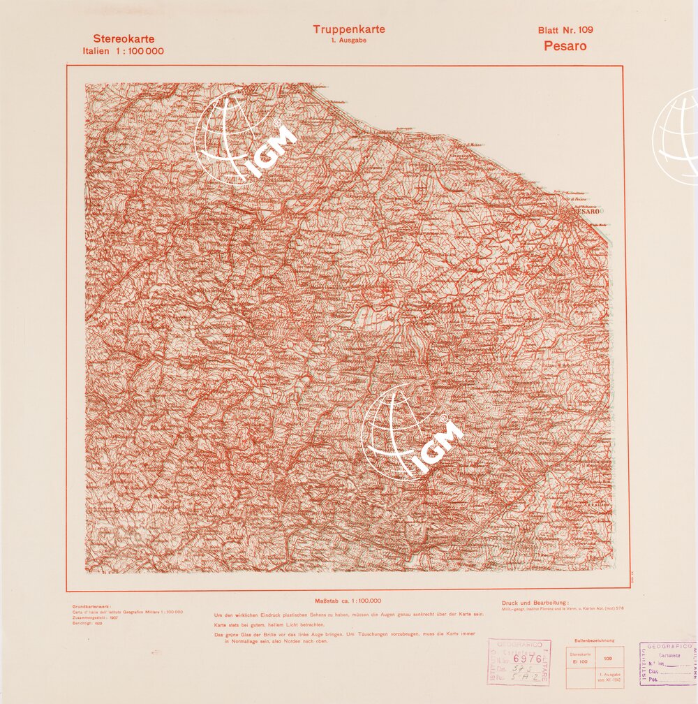 Rappresentazione orografica a curve di livello. Grafia italiana tedesca. I.G.M. (FI).