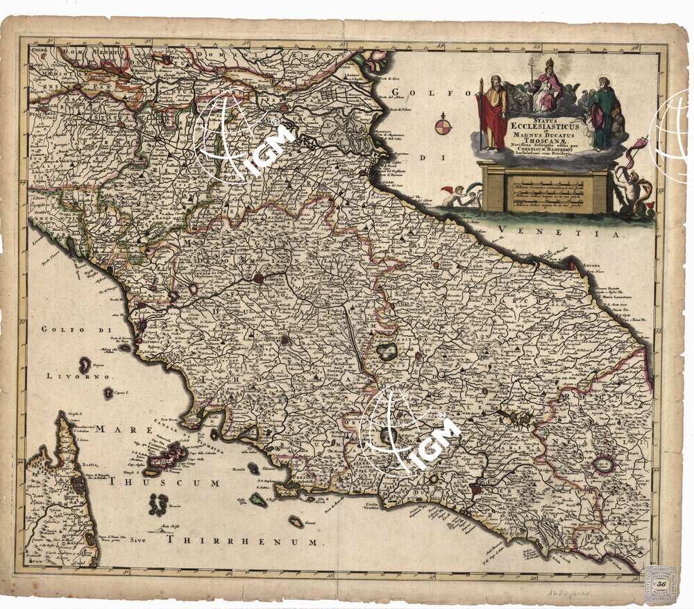 STATUS ECCLESIASTICUS ET MAGNUS DUCATUS THOSCANAE NOVISSIMA DESCRIPTIO PER CORNELIUM DANCKERTS AMSTELODAMI CUM PRIVILEGIO – Stato Ecclesiastico e Granducato di Toscana