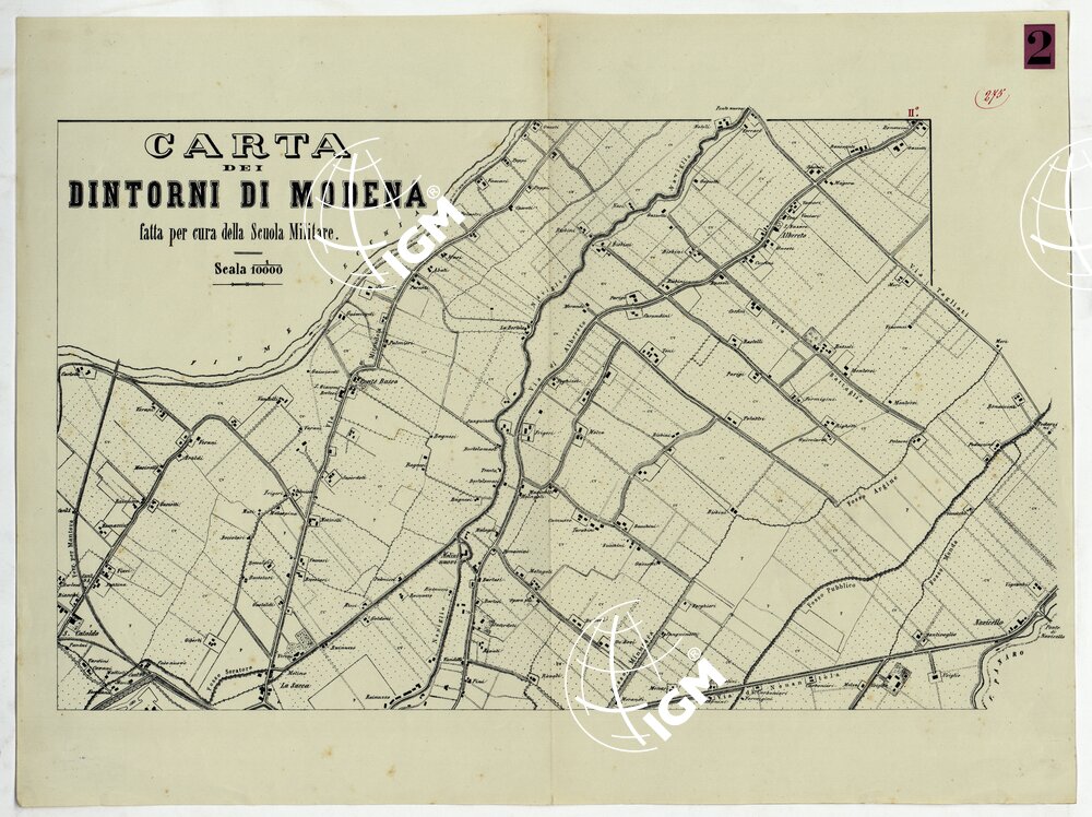 | Titolo proprio | CARTA DEI DINTORNI DI MODENA FATTA PER CURA DELLA SCUOLA MILITARE – TAVOLA 2 |