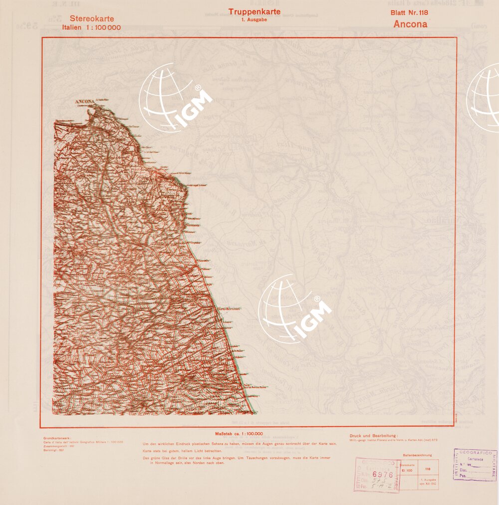 TRUPPENKARTE – STEREOKARTE – (CARTA STEREOSCOPICA PER USO MILITARE) – Foglio 118 – Ancona