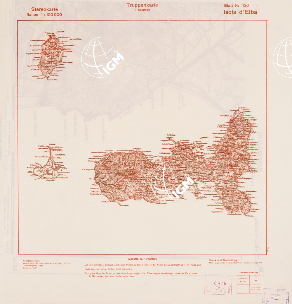 TRUPPENKARTE – STEREOKARTE – (CARTA STEREOSCOPICA PER USO MILITARE) – Foglio 126 – Isola d’Elba