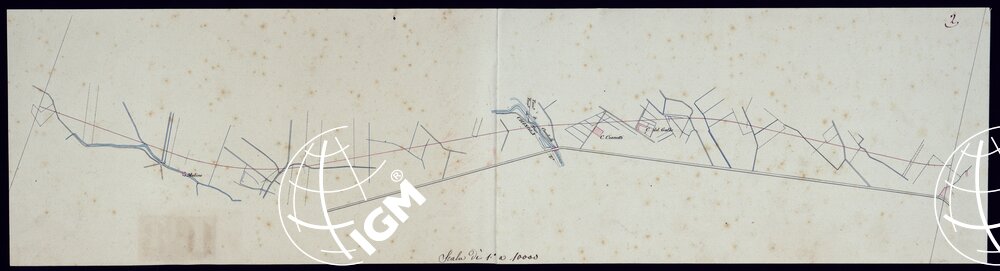 Il titolo non è presente sulla carta. Planimetrie di vari tronchi di ferrovia. Epoca 1851-1871. Disegni ad acquerello impiegati probabilmente per la carta generale degli Stati Sardi al 50.000.