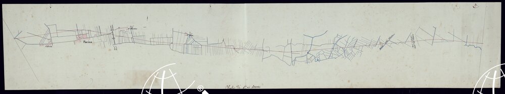 Il titolo non è presente sulla carta. Planimetrie di vari tronchi di ferrovia. Epoca 1851-1871. Disegni ad acquerello impiegati probabilmente per la carta generale degli Stati Sardi al 50.000.