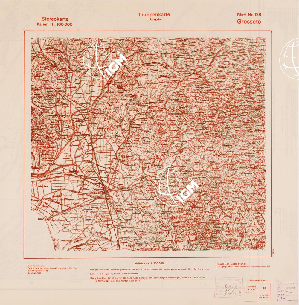 Rappresentazione orografica a curve di livello. Grafia italiana tedesca. I.G.M. (FI).