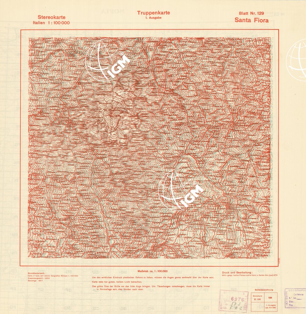TRUPPENKARTE – STEREOKARTE – (CARTA STEREOSCOPICA PER USO MILITARE) – Foglio 129 – Santa Fiora
