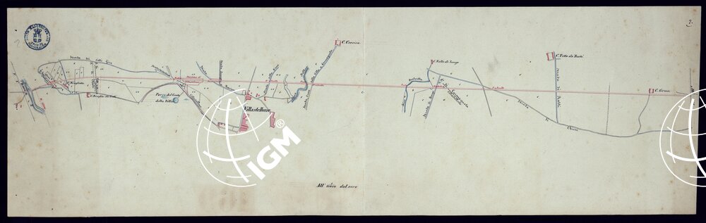 Planimetrie di vari tronchi di ferrovia. Epoca 1851-1871. Disegni ad acquerello impiegati probabilmente per la carta generale degli Stati Sardi al 50.000.