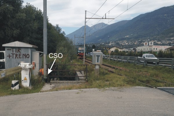| Contrassegni | [{"simbolo_contrassegno":"B1","materializzazione":"(CSO) – Bullone infisso su muretto in calcestruzzo del canale di scorrimento acque, tra passaggio a livello e la linea ferroviaria."}] |