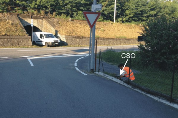 | Contrassegni | [{"simbolo_contrassegno":"B1","materializzazione":"(CSO) – Bullone infisso alla base di un muro di sostegno, in calcestruzzo, della sede stradale di Via Cuccagna."}] |
