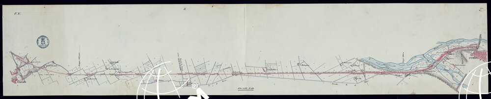 | Note foto | Il titolo non è presente sulla carta. Planimetrie di varo tronchi di ferrovia. Epoca 1851-1871. Disegni ad acquerello impiegati probabilmente per la carta generale degli Stati Sardi al 50.000. |