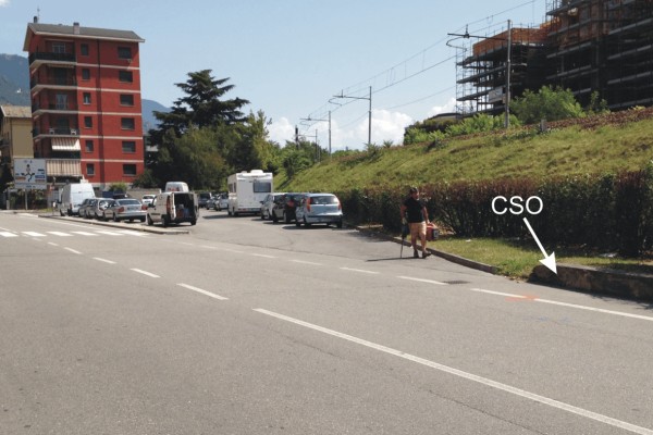 | Contrassegni | [{"simbolo_contrassegno":"B1","materializzazione":"(CSO) – Bullone infisso sul muretto alla base del rilevato ferroviario, antistante il civico 18."},{"simbolo_contrassegno":"V1","materializzazione":"(CSV) – Mensola infissa sulla facciata del fabbricato del civico 2, di Via dello Stadio, in prossimit\u00e0 dello spigolo sinistro."}] |