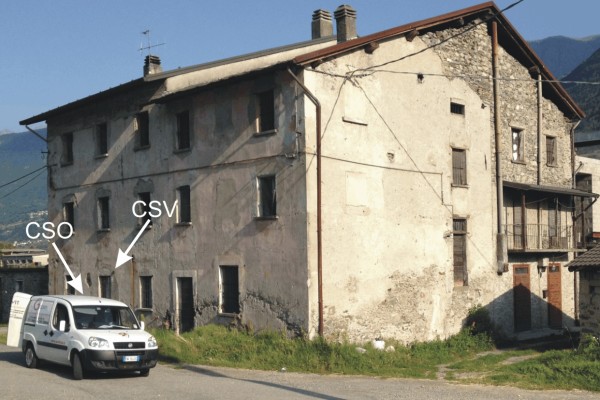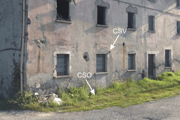 | Contrassegni | [{"simbolo_contrassegno":"P3","materializzazione":"(CSO) – Chiusino in ghisa posto alla base della facciata e tra la seconda e la terza finestra a sinistra della porta principale"},{"simbolo_contrassegno":"V1","materializzazione":"(CSV) – Mensola infissa sulla facciata, fra la prima e la seconda finestra, a sinistra della porta principale"}] |