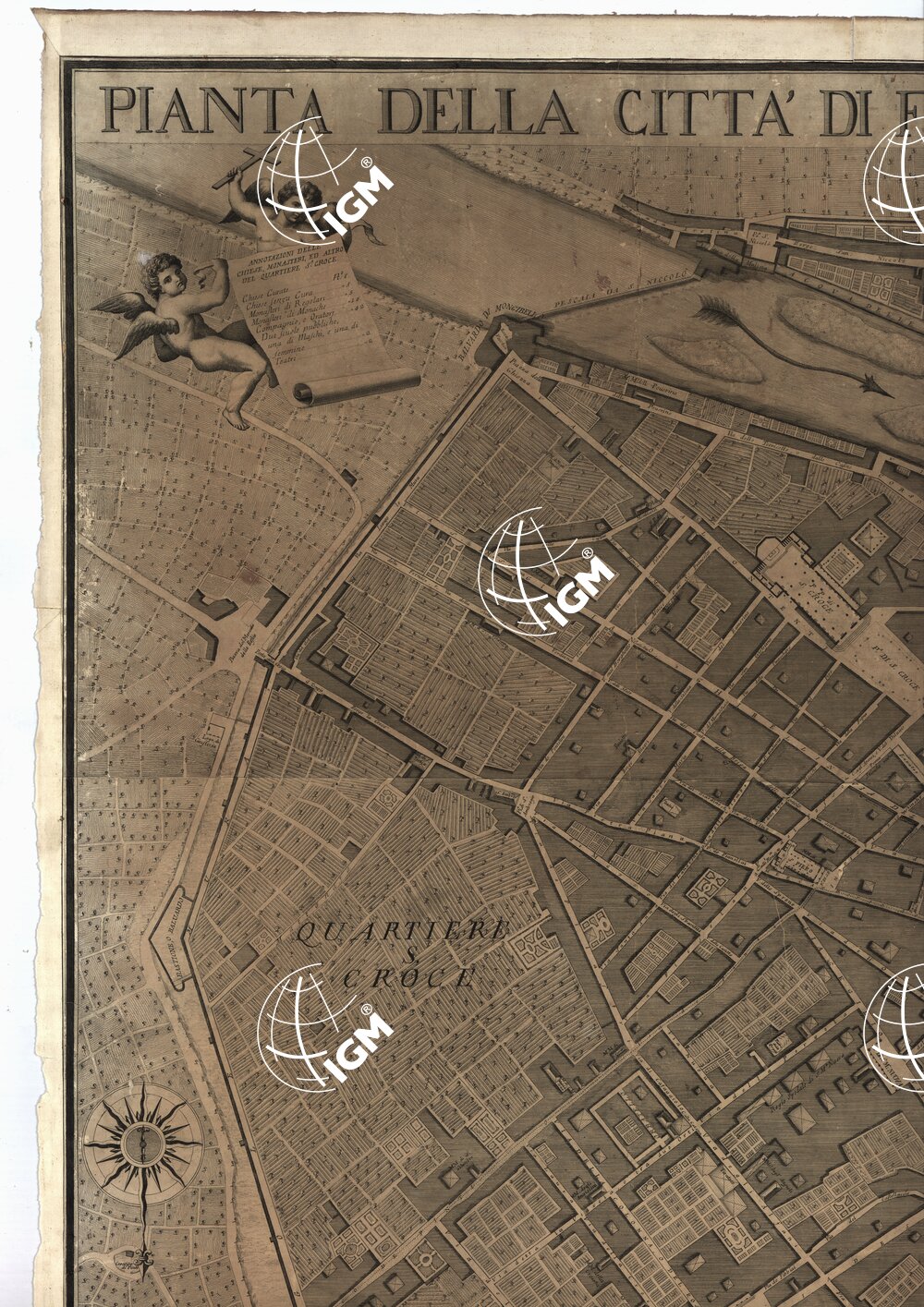 Pianta rilevata e disegnata dall’ingegnere architetto comunale Francesco Magnelli, edita nel 1783 su incisione di Cosimo Zocchi. Carta commissionata da Pietro Leopoldo cui è dedicata; dovette avere anche chiare funzioni celebrative, quale strumento di promozione delle scelte di buongoverno urbanistico e sociale attuate in quel periodo. La pianta evidenzia infatti, con precisione, la forma urbana che era oggetto del programma di rinnovamento.