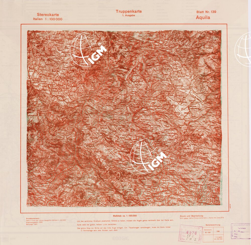 Rappresentazione orografica a curve di livello. Grafia italiana tedesca. I.G.M. (FI).