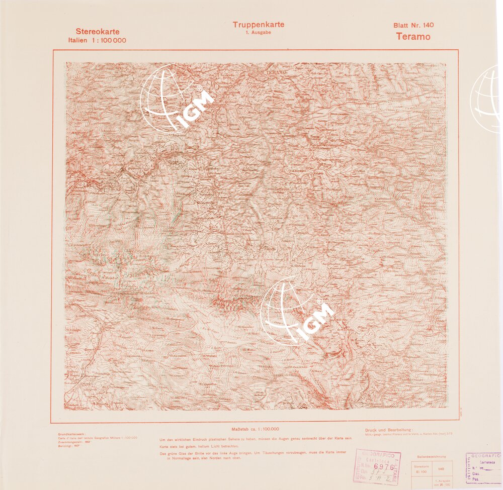 Rappresentazione orografica a curve di livello. Grafia italiana tedesca. I.G.M. (FI).