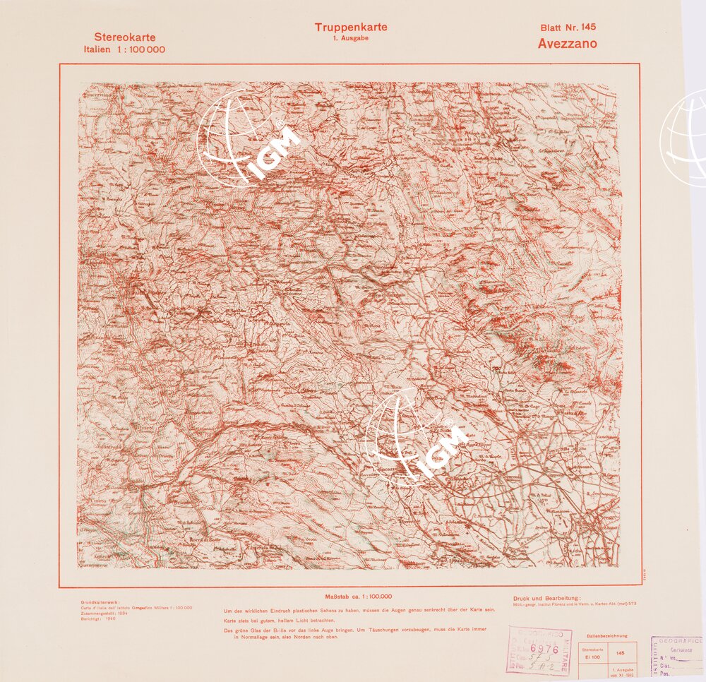 TRUPPENKARTE – STEREOKARTE – (CARTA STEREOSCOPICA PER USO MILITARE) – Foglio 145 – Avezzano