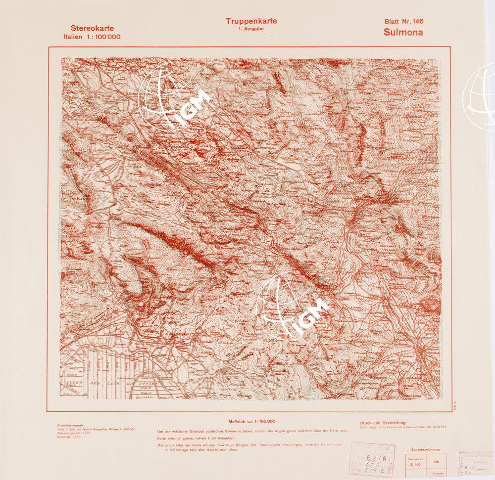 Rappresentazione orografica a curve di livello. Grafia italiana tedesca. I.G.M. (FI).