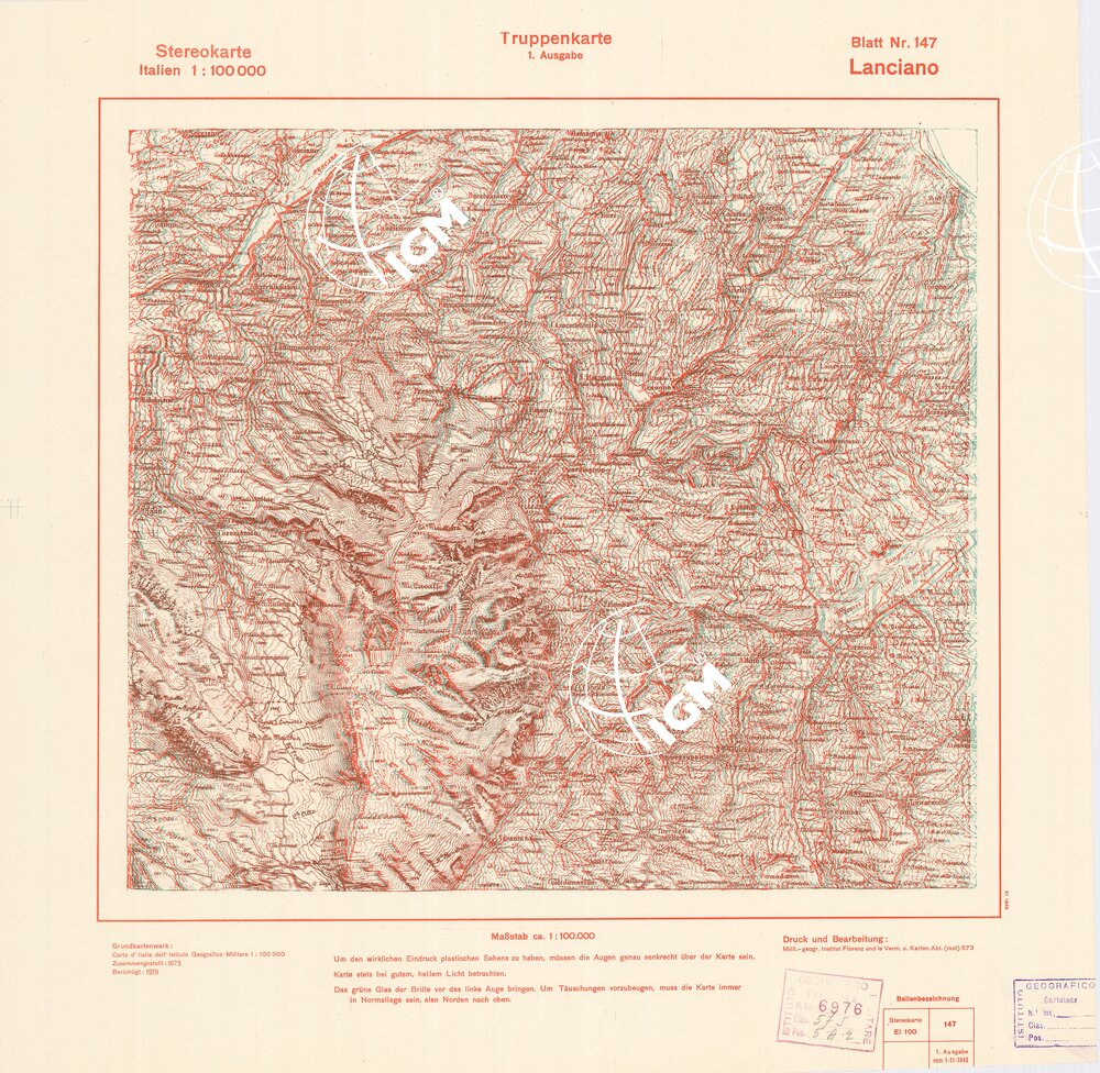 Rappresentazione orografica a curve di livello. Grafia italiana tedesca. I.G.M. (FI).
