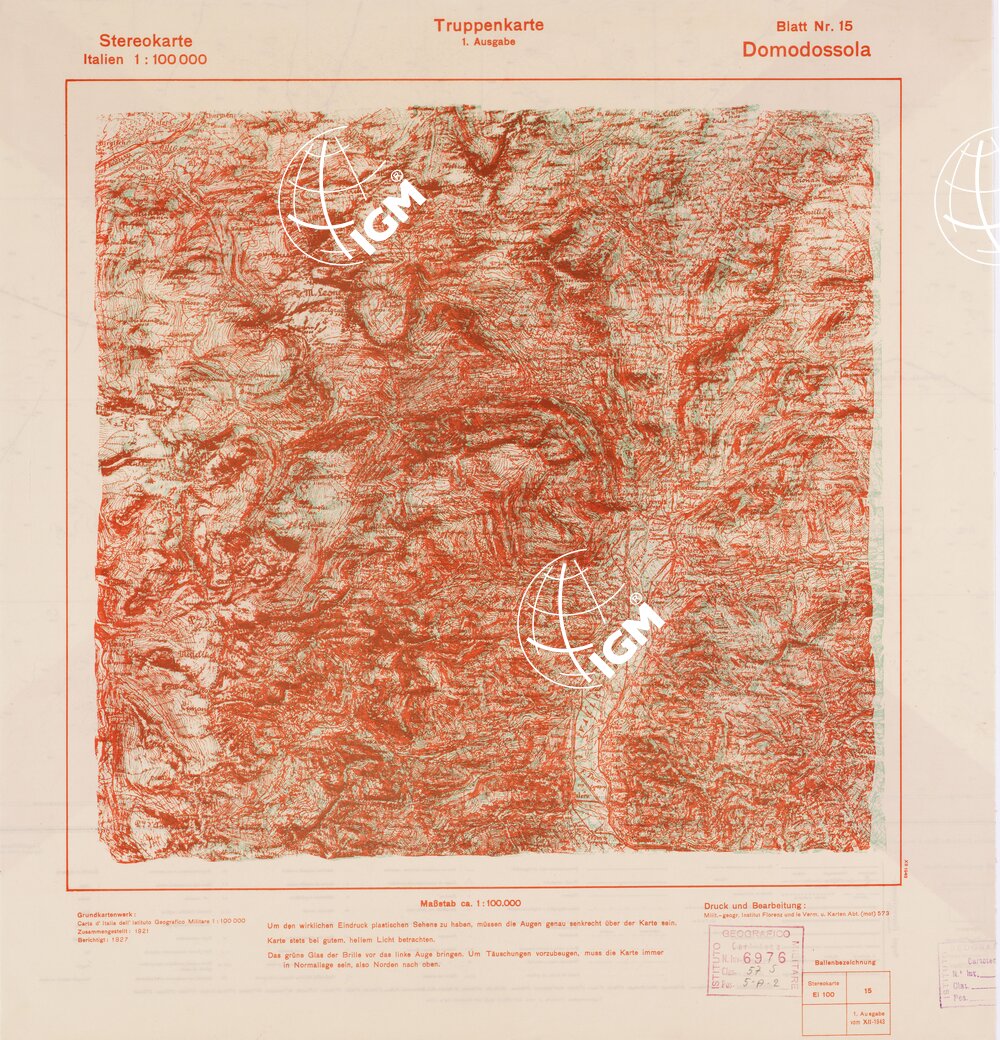 TRUPPENKARTE – STEREOKARTE – (CARTA STEREOSCOPICA PER USO MILITARE) – Foglio 15 – Domodossola