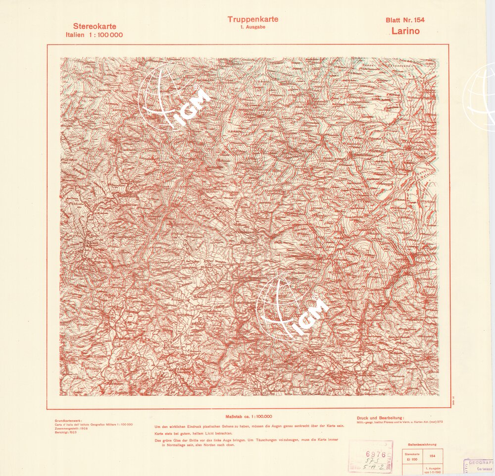 Rappresentazione orografica a curve di livello. Grafia italiana tedesca. I.G.M. (FI).