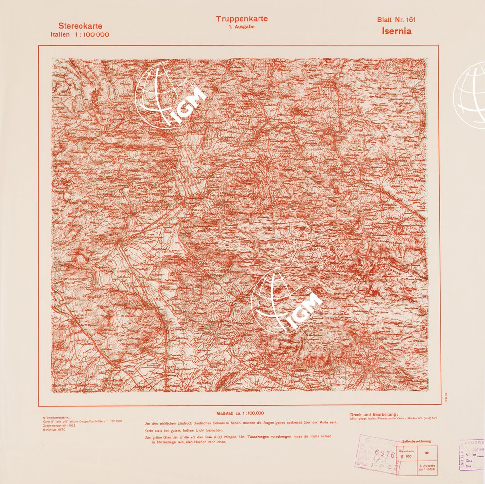 Rappresentazione orografica a curve di livello. Grafia italiana tedesca. I.G.M. (FI).