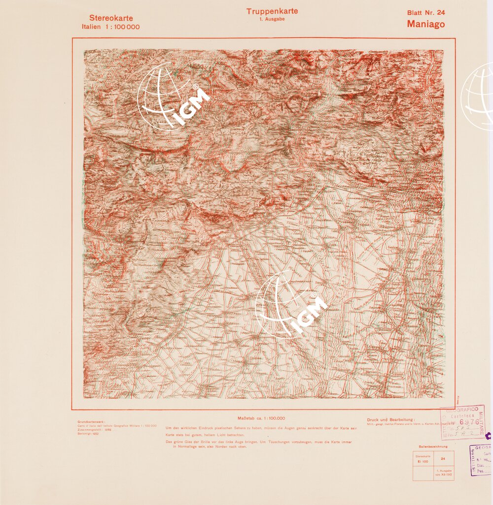 Rappresentazione orografica a curve di livello. Grafia italiana tedesca. I.G.M. (FI).