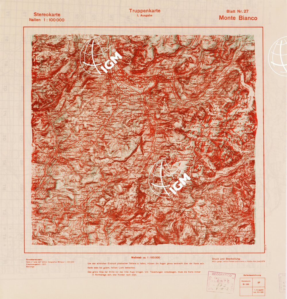 Rappresentazione orografica a curve di livello. Grafia italiana tedesca. I.G.M. (FI).