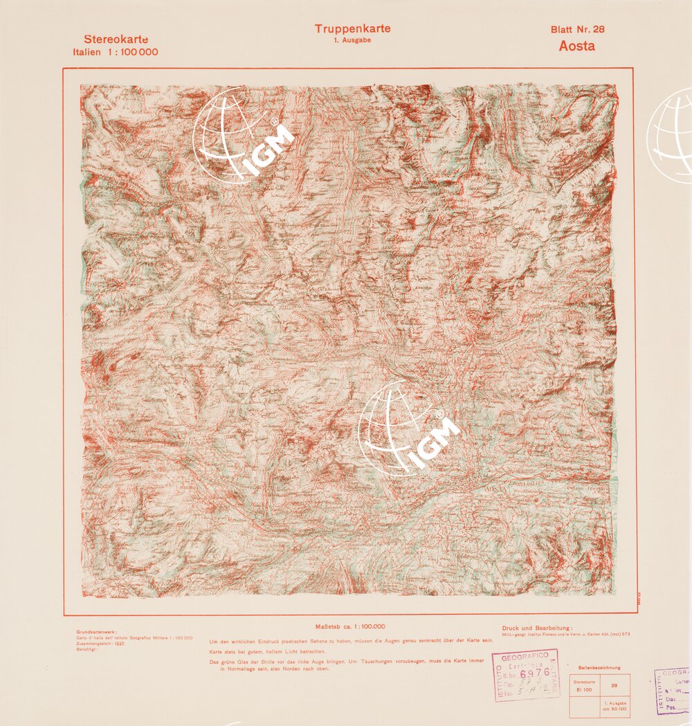 Rappresentazione orografica a curve di livello. Grafia italiana tedesca. I.G.M. (FI).