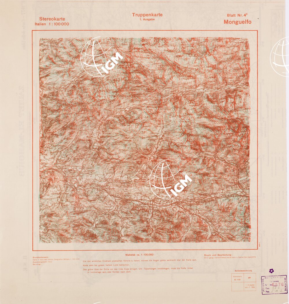 Rappresentazione orografica a curve di livello. Grafia italiana tedesca. I.G.M. (FI).