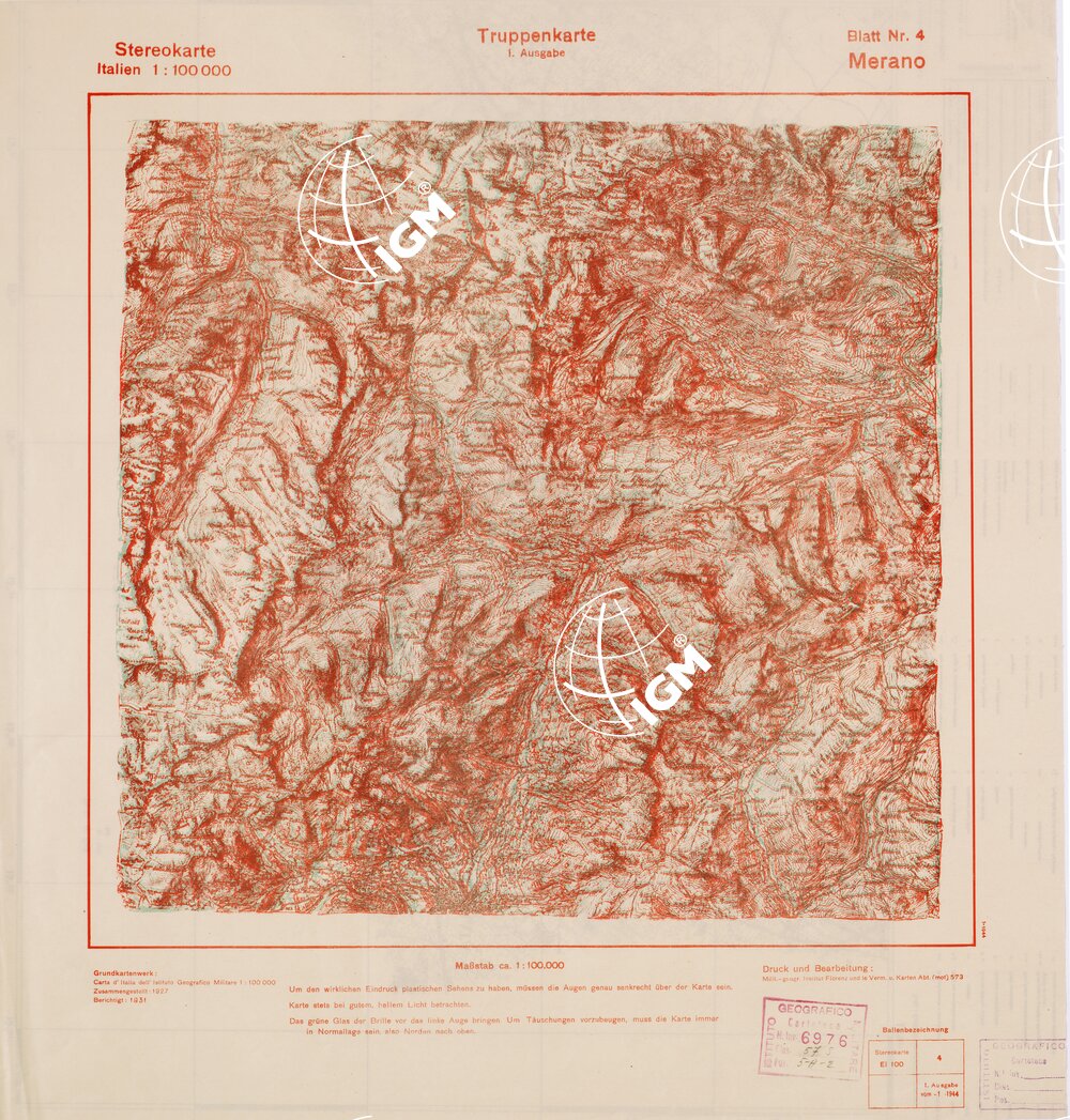 Rappresentazione orografica a curve di livello. Grafia italiana tedesca. I.G.M. (FI).