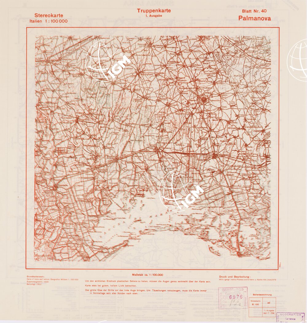 TRUPPENKARTE – STEREOKARTE – (CARTA STEREOSCOPICA PER USO MILITARE) – Foglio 40 – Palmanova