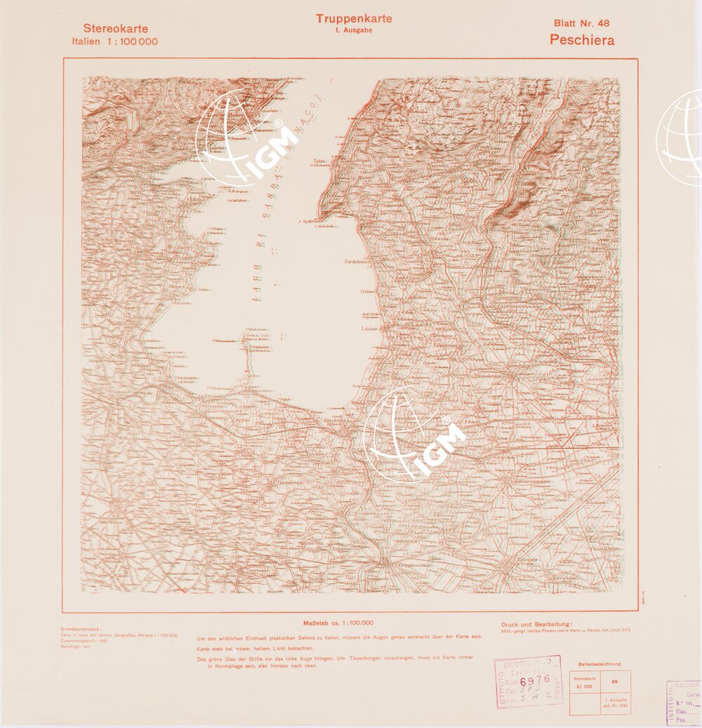 TRUPPENKARTE – STEREOKARTE – (CARTA STEREOSCOPICA PER USO MILITARE) – Foglio 48 – Peschiera
