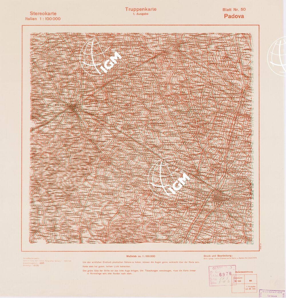 Rappresentazione orografica a curve di livello. Grafia italiana tedesca. I.G.M. (FI).