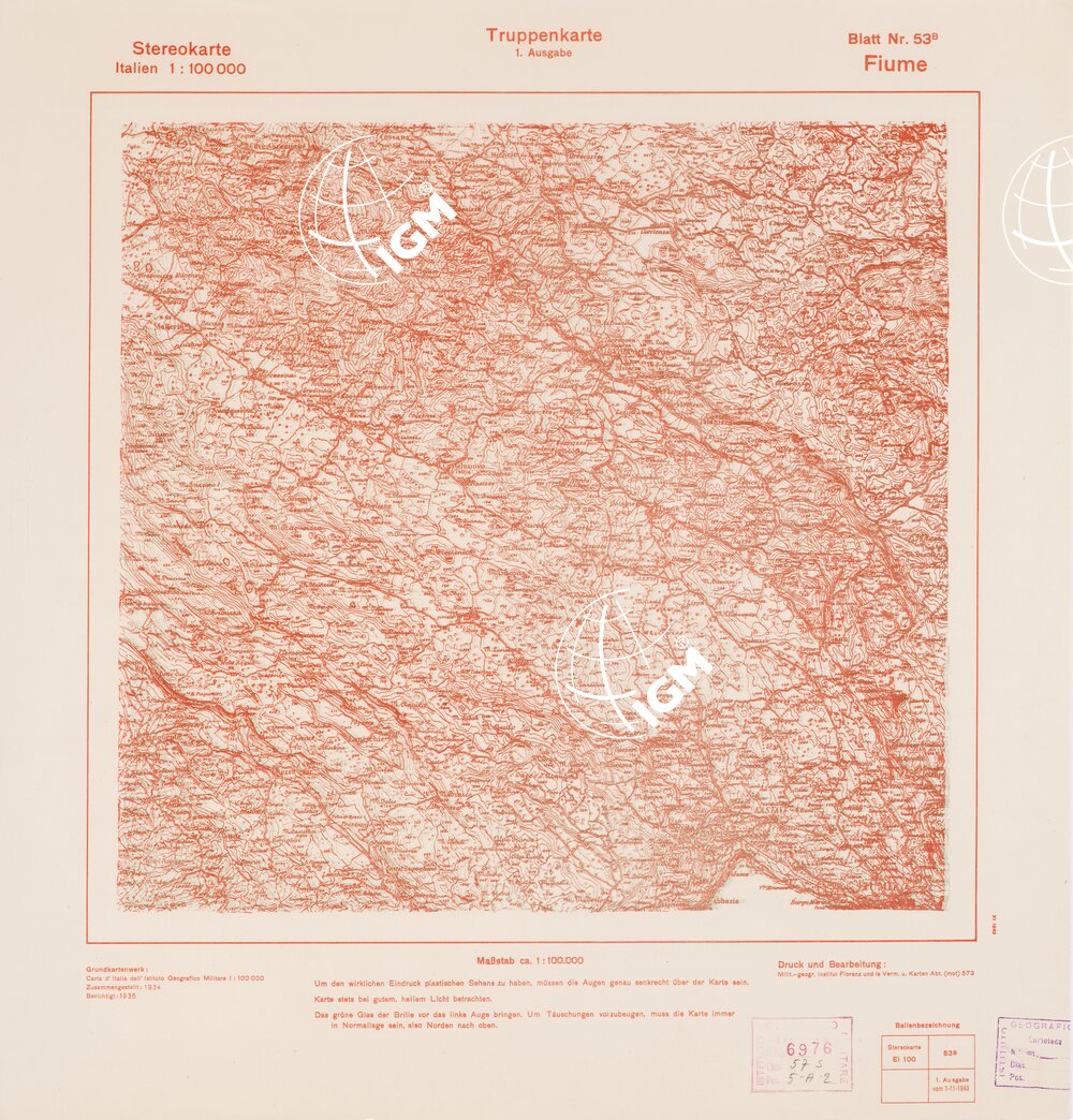 TRUPPENKARTE – STEREOKARTE – (CARTA STEREOSCOPICA PER USO MILITARE) – Foglio 53B – Fiume