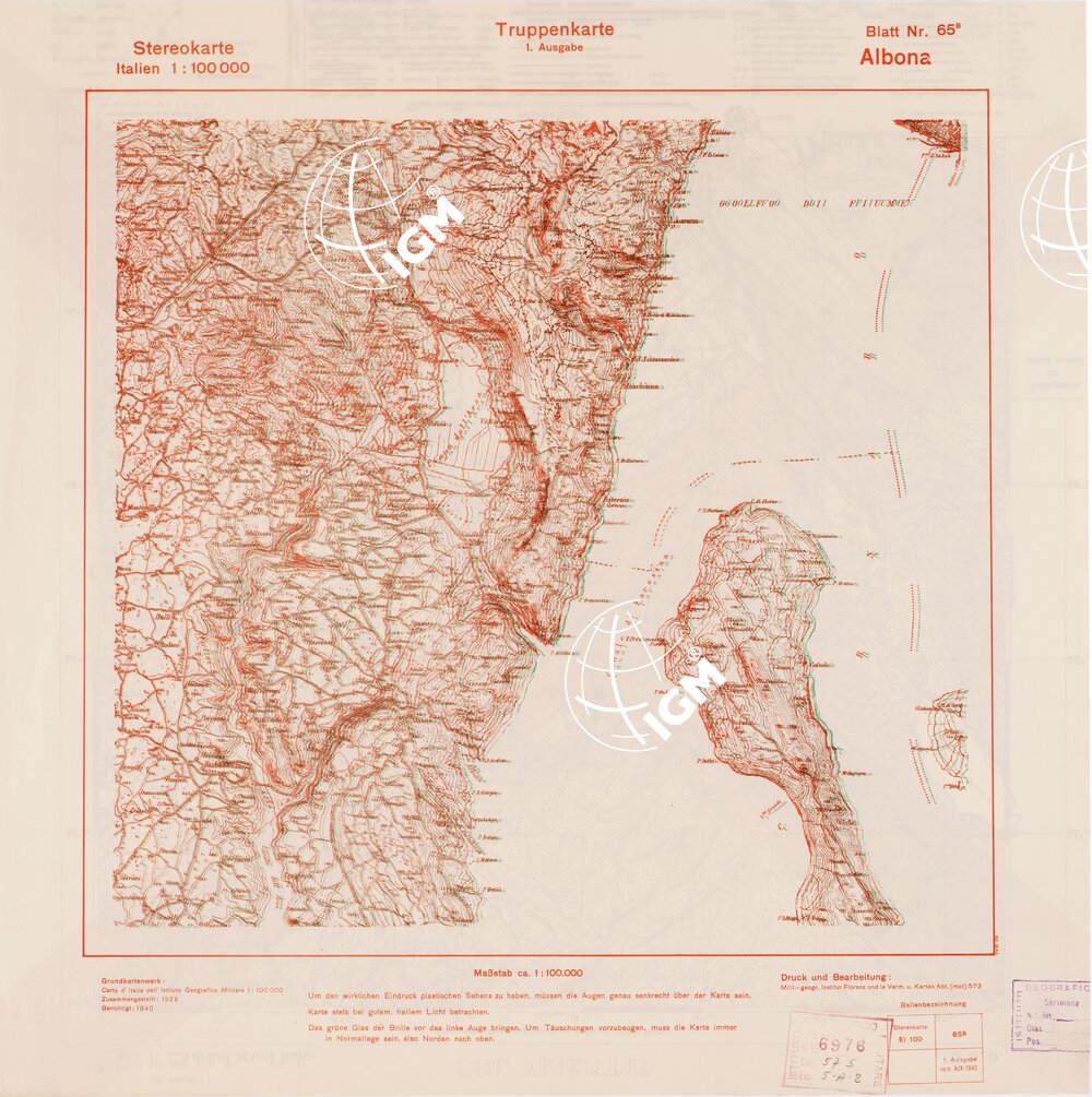 Rappresentazione orografica a curve di livello. Grafia italiana tedesca. I.G.M. (FI).