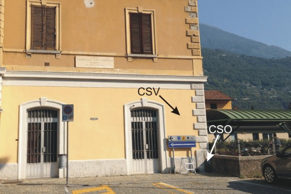 [{"simbolo_contrassegno":"B1","materializzazione":"(CSO) – Bullone infisso sull' estremit\u00e0 destra della facciata della stazione ferroviaria di Morbegno."},{"simbolo_contrassegno":"V6","materializzazione":"(CSV) – Piastrina con cilindretto infissa in prossimit\u00e0 del cso."}]