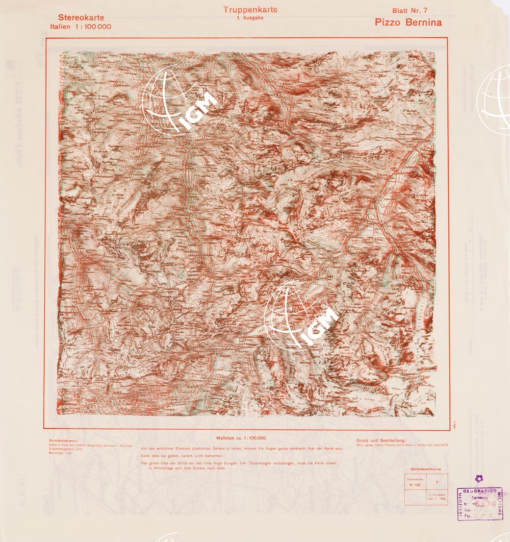 Rappresentazione orografica a curve di livello. Grafia italiana tedesca. I.G.M. (FI).