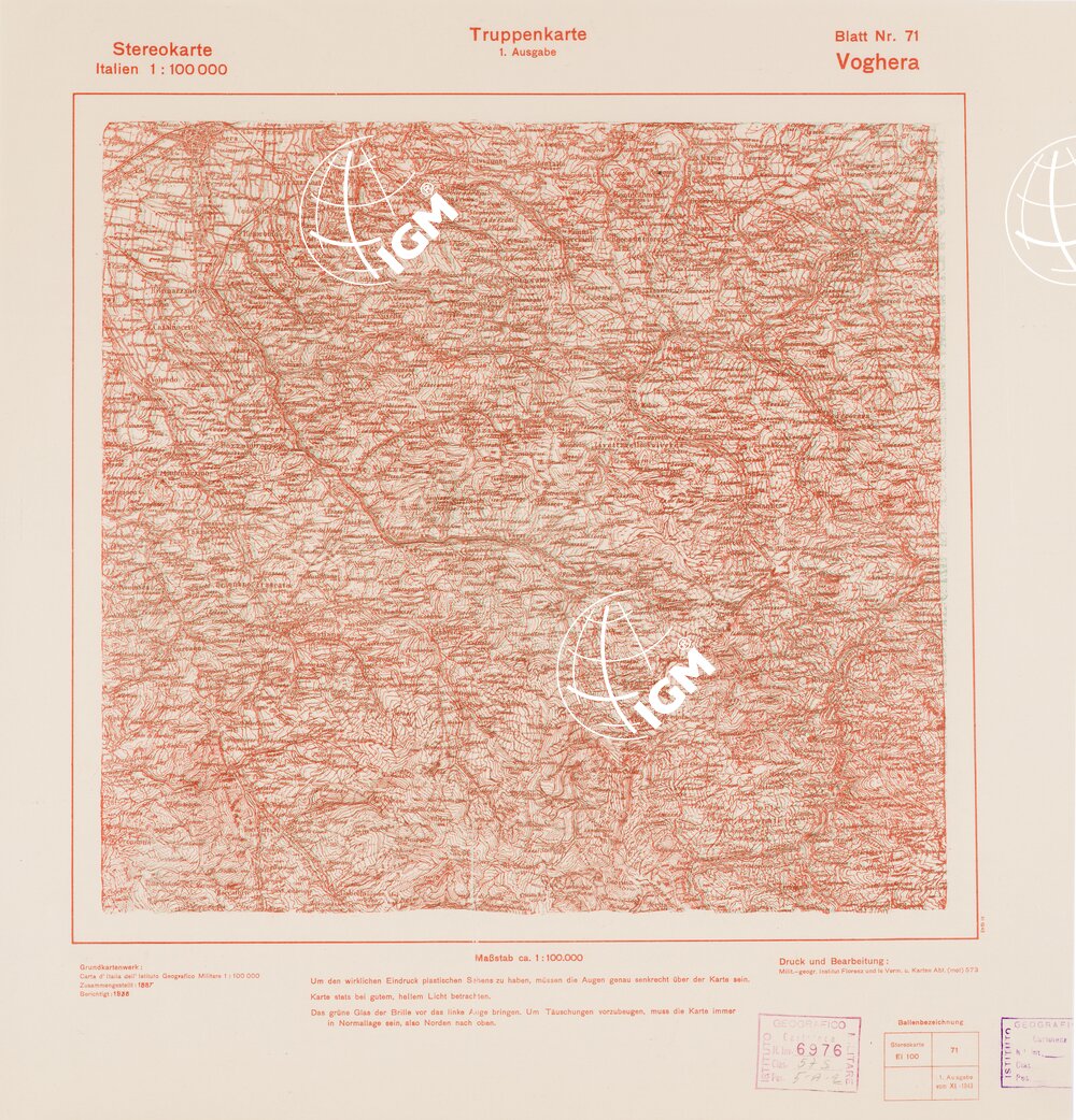 TRUPPENKARTE – STEREOKARTE – (CARTA STEREOSCOPICA PER USO MILITARE) – Foglio 71 – Voghera