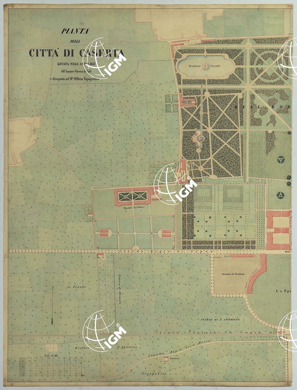 PIANTA DELLA CITTA' DI CASERTA LEVATA NELL'ANNO 1857 DALL'INGEGNERE VINCENZO DI CARLO E DISEGNATA NEL R.LE. OFFICIO TOPOGRAFICO – FOGLIO 1