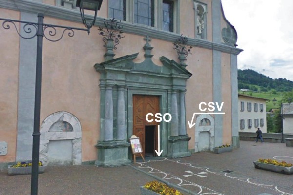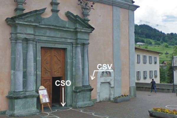 | Contrassegni | [{"simbolo_contrassegno":"B5","materializzazione":"(CSO) – Disco impiombato posto sull'estremit\u00e0 destra della soglia della porta d'ingresso della Chiesa."},{"simbolo_contrassegno":"V3","materializzazione":"(CSV) – Piastrina antica infissa sulla facciata, a destra della porta d'ingresso della Chiesa."}] |