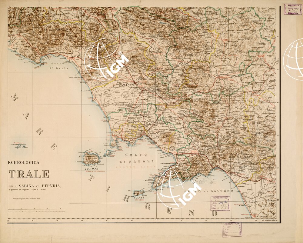 CARTA COROGRAFICA ED ARCHEOLOGICA DELL’ITALIA CENTRALE OSSIA ANTICO LAZIO, CAMPANIA, SANNIO CON PARTI MERIDIONALI DELLA SABINA ED ETRURIA – Foglio 4