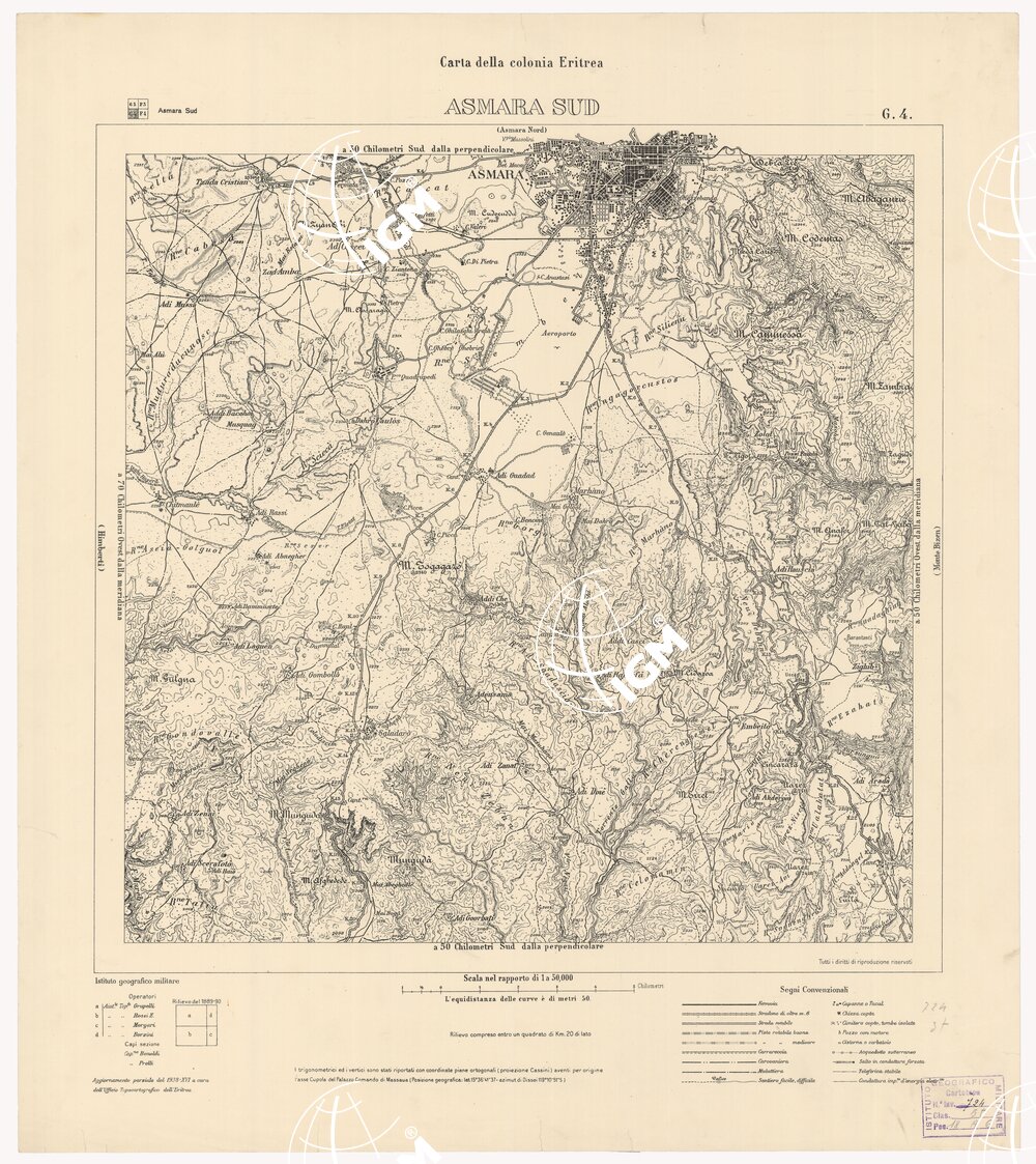 CARTA DELLA COLONIA ERITREA ASMARA SUD G 4