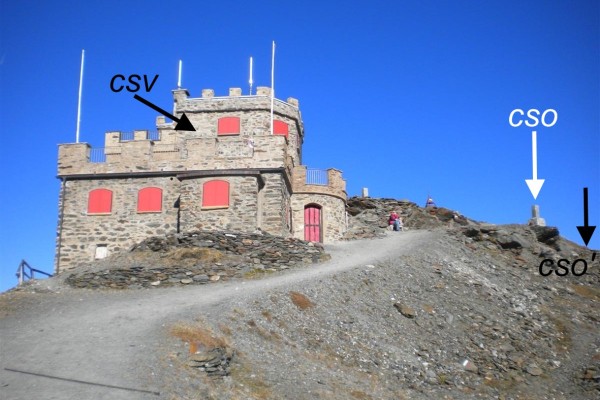| Contrassegni | [{"simbolo_contrassegno":"B6","materializzazione":"(CSO) – Centrino in acciaio inox del tipo \"GPS C\" infisso in asse al cippo di confine Italo-Svizero n\u00b0 2, nelle vicinanze del rifugio \"Drei Sprachen H\u00fctte\". Il punto \u00e8 coincidente con il vertice IGM95 009801."},{"simbolo_contrassegno":"B5","materializzazione":"(CSO') – Centrino piatto in bronzo, protetto da chiusino in cemento, cementato su roccia posto dopo 16,65 m dal cippo di confine n\u00b02 (CSO). Il punto coincide con il vertice IGM95 009801A."},{"simbolo_contrassegno":"V2","materializzazione":"(CSV) – Piastrina a barilotto infissa sulla facciata del 1\u00b0 piano del rifugio \"Drei Sprachen H\u00fctte\", in prossimit\u00e0 dell'entrata."}] |