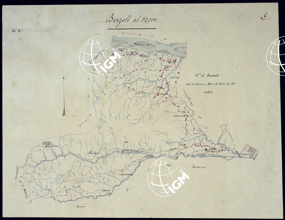 Il titolo non è presente sulla carta. Il titolo non è presente sulla carta. Gruppo di 51 mappe catastali di diversi comuni, impiegate con tutta probabilità per la costruzione della carta generale degli Stati Sardi al 50.000. Senza firma, eccetto due, firmate da Langrange, una riduzione del piano catastale del territorio d’Ivrea firmato Valsecchi 1822, e una riproduzione dei piani catastali di comuni della provincia d’Ivrea firmata Cap. Roggero.