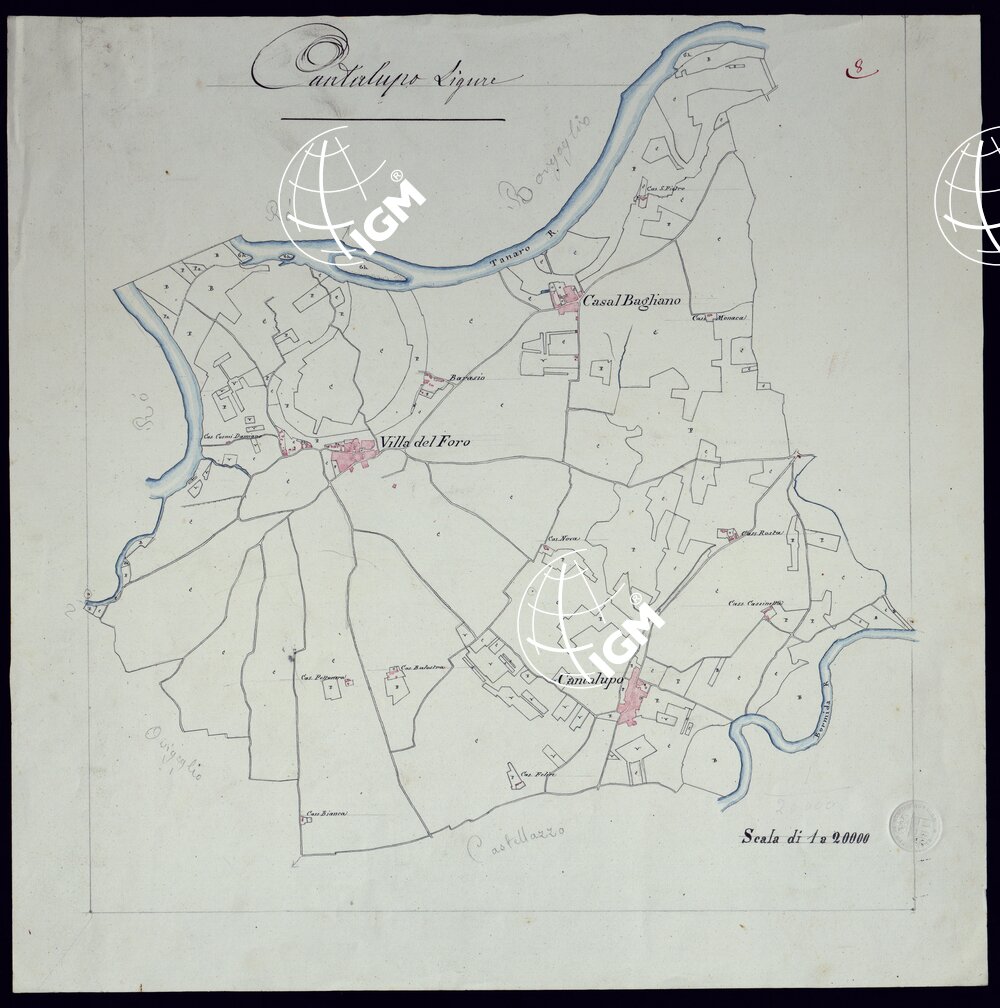 Il titolo non è presente sulla carta. Il titolo non è presente sulla carta. Gruppo di 51 mappe catastali di diversi comuni, impiegate con tutta probabilità per la costruzione della carta generale degli Stati Sardi. Senza firma, eccetto due, firmate da Langrange, una riduzione del piano catastale del territorio d’Ivrea firmato Valsecchi 1822, e una riproduzione dei piani catastali di comuni della provincia d’Ivrea firmata Cap. Roggero.