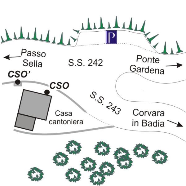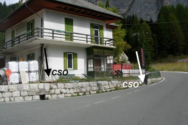 [{"simbolo_contrassegno":"B1","materializzazione":"(CSO) – Bullone infisso sulla facciata della casa cantoniera, in prossimit\u00e0 dello spigolo sinistro."},{"simbolo_contrassegno":"B4","materializzazione":"(CSO') – Centrino universale infisso sul basamento di una sbarra adibita alla chiusura della strada."}]