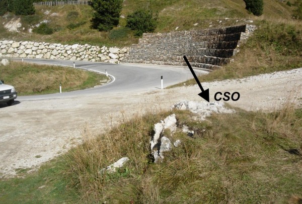 [{"simbolo_contrassegno":"B4","materializzazione":"(CSO) – Centrino universale infisso su di una roccia affiorante che si trova in un'area di sosta."}]